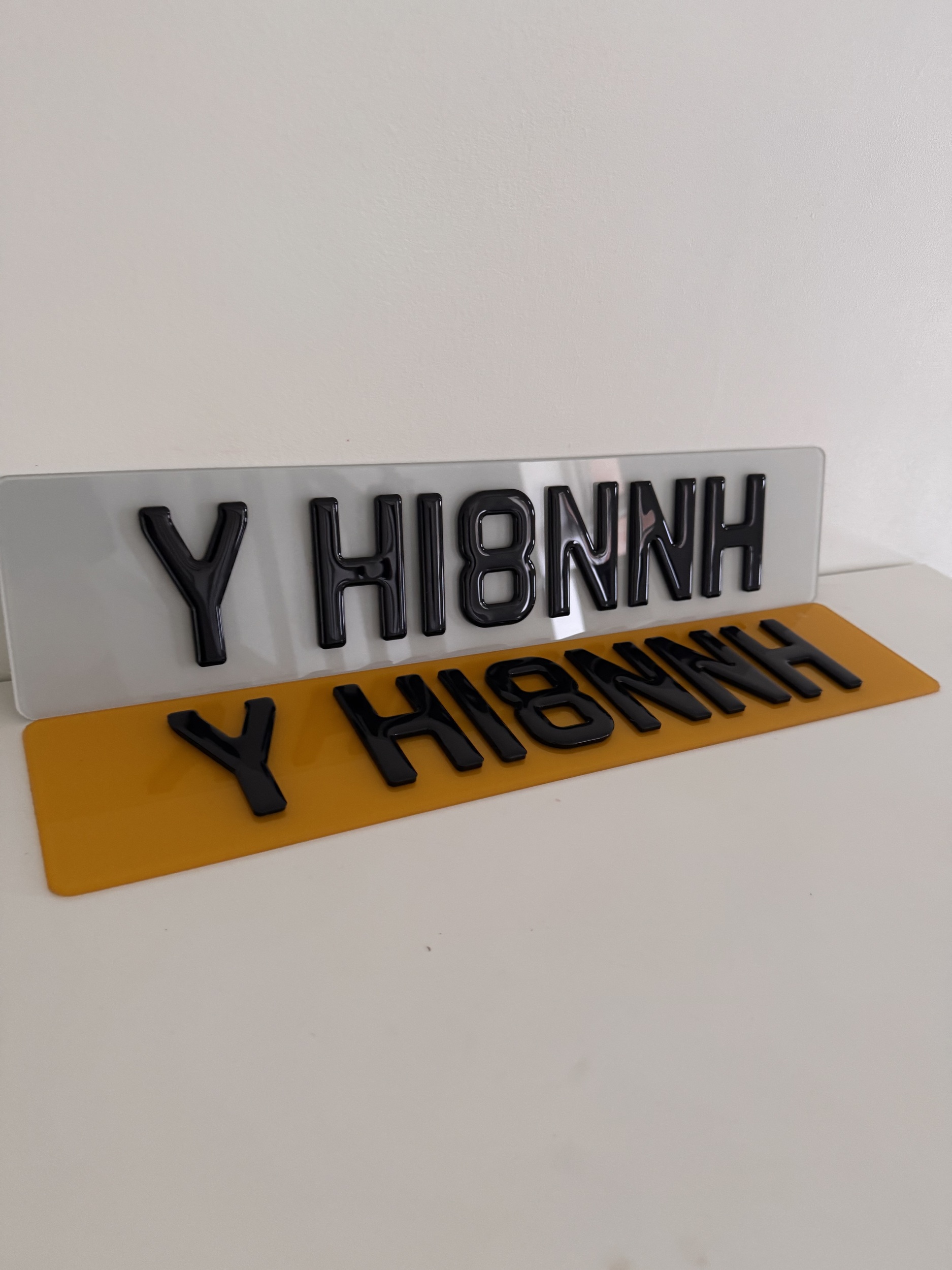 A 4D Apex number plate is a new released number plate style which is unique and the most popular style we have as of now. It is a precision-cut acrylic to create a deep, stepped 3D effect. The 4D Apex characters often have clean, bevel-like edges or a stepped structure. This style also gives the illusion of a pyramid or peak, making letters appear more sculpted. Made from polished black acrylic top layer with a glossy finish.