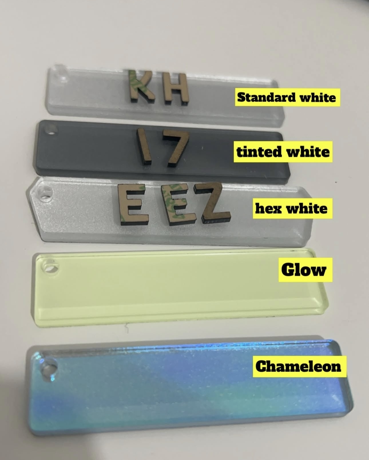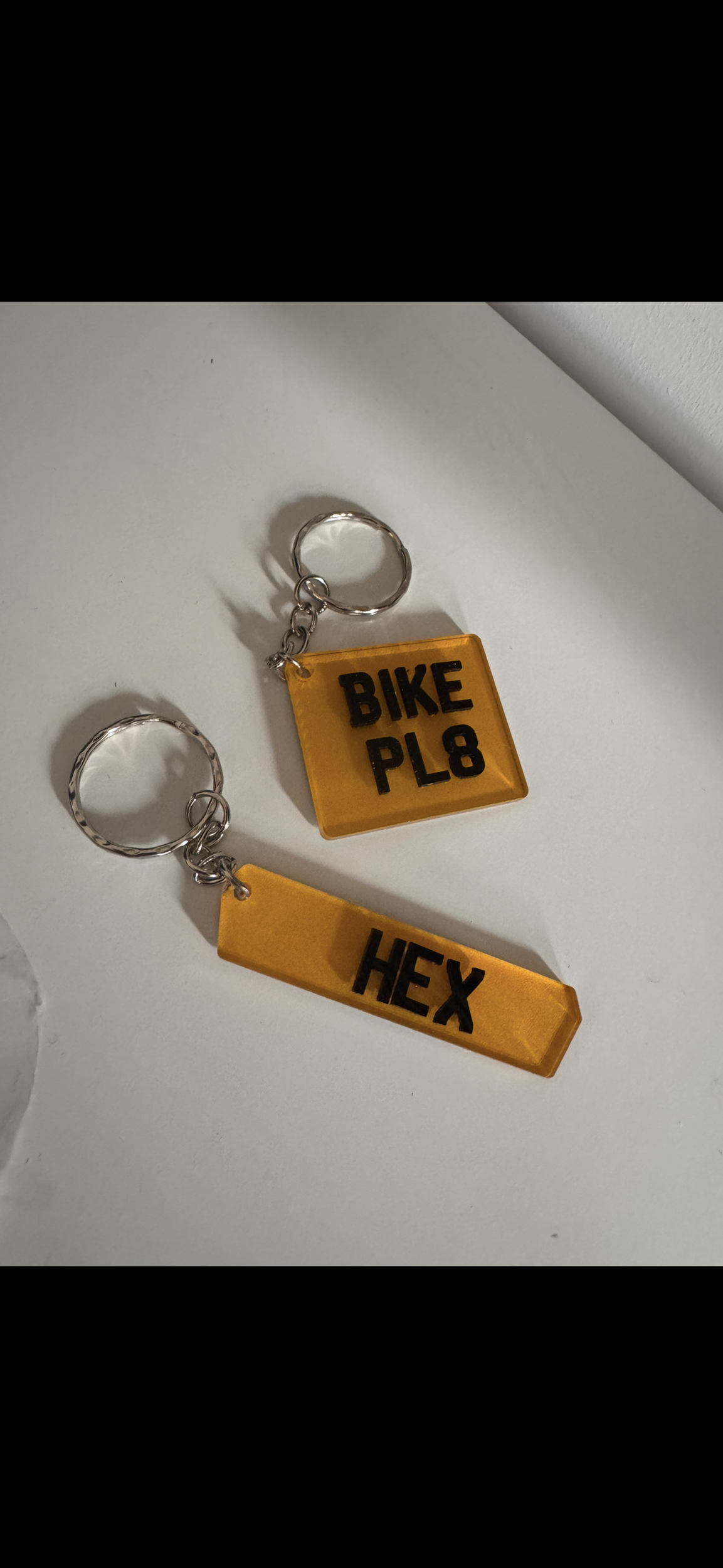 Keyrings with number plates are a popular and fun way to personalise your keys or as a souvenir for car enthusiasts. They typically feature the same design as your vehicle's license plate, either as a miniature replica or a stylized version of the number plate. These keyrings can make for great gifts, and some people even collect them as a hobby. They can come in many different styles, for example, Hex, Tinted, Standard or motorbike.
